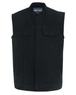 This vest also has a single panel back (perfect for patches), uses top quality YKK zippers and has a hidden cropped center zipper for a clean look.