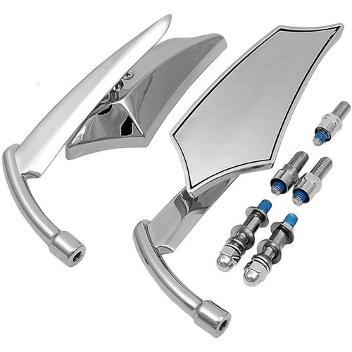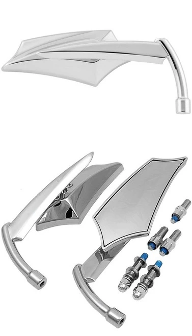 These custom motorcycle mirrors are made with durable construction and a unique sculpted design giving you a clean crisp look with great rearward visibility.