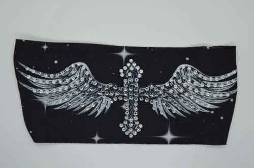 CROSS WITH WINGS IN NIGHT SKY WITH CLEAR RHINESTONES