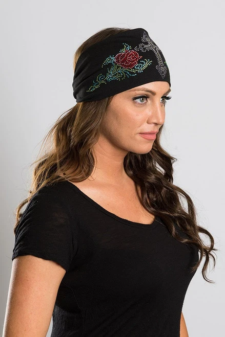 EZ BANDZ Headband, Bling Roses and Cross w/ Crystals