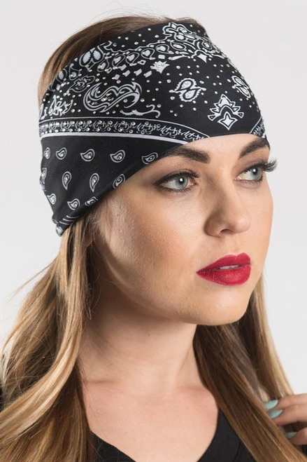 EZ BANDZ Headband, Paisley Black Bandana w/ Gems