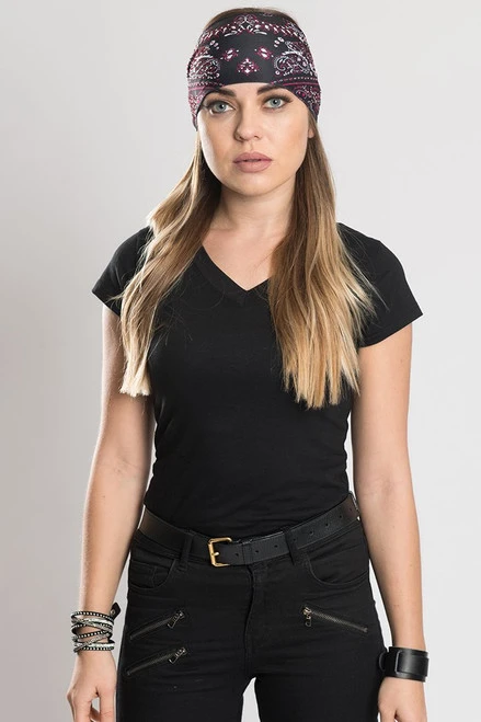 EZ BANDZ Headband, Paisley Hot Pink Bandanna w/ Gems