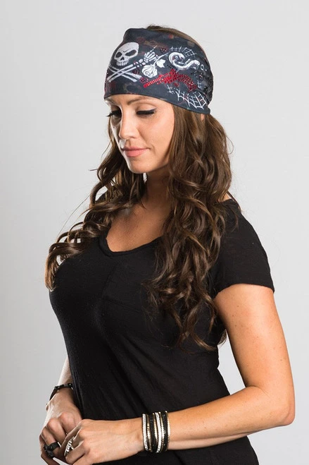 EZ BANDZ Headband, Peace Skull & Bones w/Gems