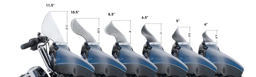 Klock Werks Flare™ Windshield for Harley-Davidson® is the ORIGINAL windshield of its kind, and has surprised riders everywhere with not only how great it looks, but also with how well it performs.The innovative, patented, design features “hips” at the outer edge of the shield that re-route the air to add downforce to the front of the bike, improving stability vs riding with a stock shield. The “flip” at the top of the Flare™ is designed to kick the air up and back as “clean”, less turbulent air for the rider and passenger.Made from hard-coated polycarbonate material for added durability.