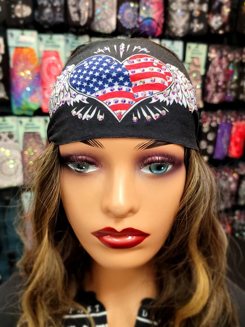HEART WITH WINGS AMERICAN FLAG WITH IRIDESCENT RHINESTONES
