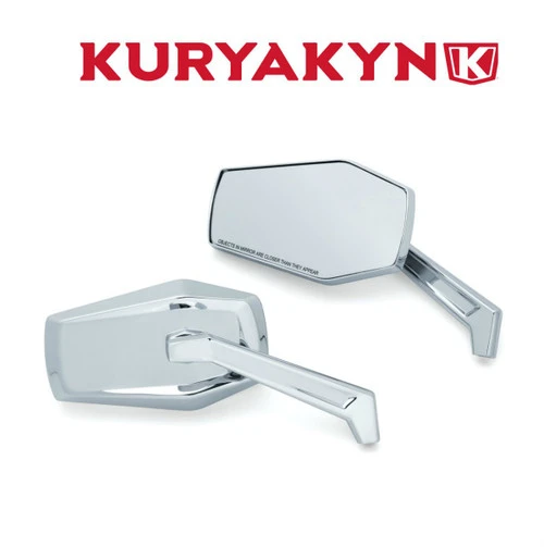 Hex Mirrors are a striking display of fit, finish, and functionality. The wide, angular mirror heads offer excellent field of vision and are accented by smooth beveled edges for a clean custom look. A machined stainless steel ball and nylon socket provide smooth pivoting for easy adjustability and secure positioning.