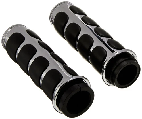 For the rider who demands the ultimate in comfort and style. Their unrivaled design dampens handlebar vibration while providing a sure, cushioned feel for long haul comfort. Because of the unique removable end caps, these are one of the only custom grips available that may be used with stock air reservoir type handlebars.