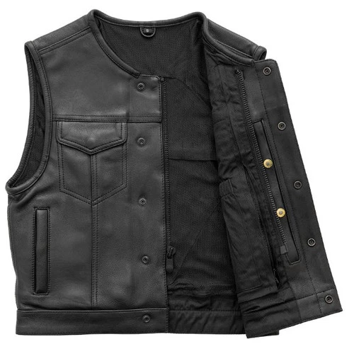 The Lowside is a proper club style vest with a shorter, and smaller fit. The Lowside runs 3 inches shorter than a standard vest, so it won’t bunch up or lift at the shoulders while you’re riding. It also runs a half size smaller in the chest than other vests like the No Rival or Highside. It’s got our standard conceal carry pockets, mesh lining, and a single back panel. The Lowside features a rolled collar, perfect if you like your vest more simple, or like to layer a collared or hooded item underneath.