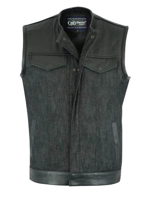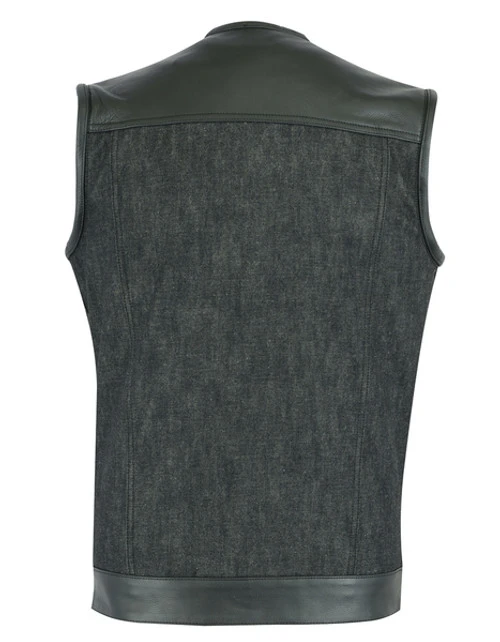 Men’s Collarless Leather/Denim Combo Vest