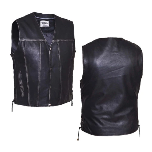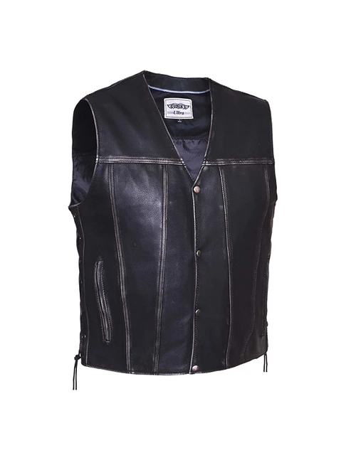 – Men’s Vest in Vintage Black Distressed Leather