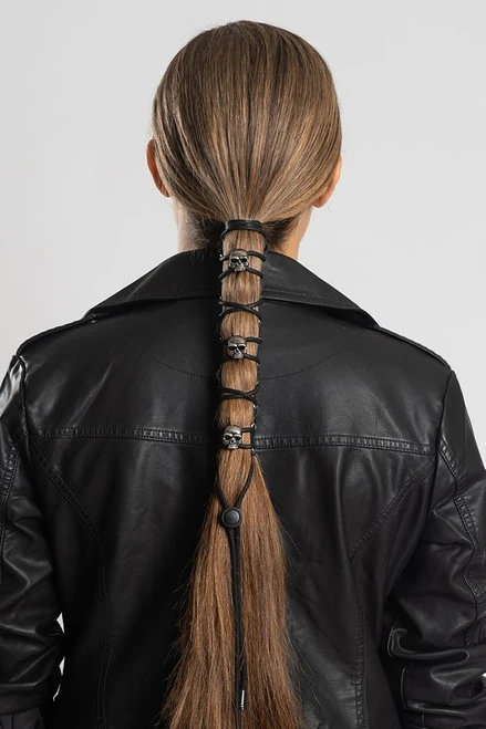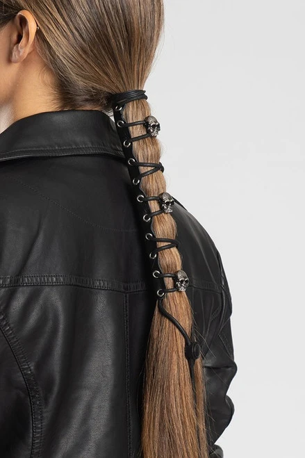 8″ Ponytail Holder, Lace Up w/Skull Conchos