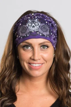 Fancy Fleur De Lis Gold/Black Lady Biker Pony Tail Bling Headwrap