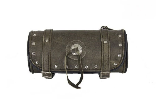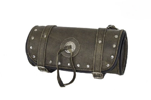 Studded Brown Leather Motorcycle Tool Bag