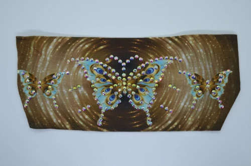 TRIPLE BLUE BUTTERFLIES WITH GOLD SWIRL WITH IRIDESCENT RHINESTONES