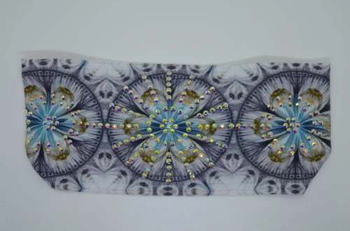 TRIPLE FLOWERS BLUE/NAVY STARBURST WITH IRIDESCENT RHINESTONES