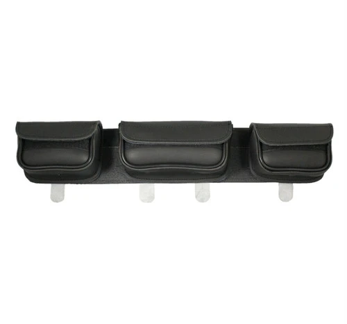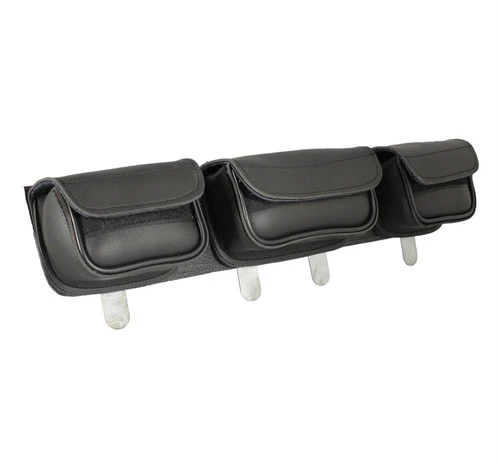 Attach this PVC studded motorcycle triple pouch windshield bag to your motorcycle for added storage.