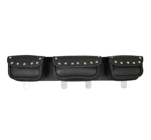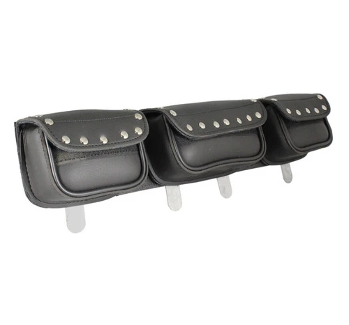 Attach this PVC studded motorcycle triple pouch windshield bag to your motorcycle for added storage.