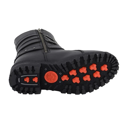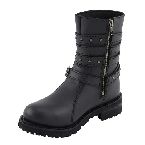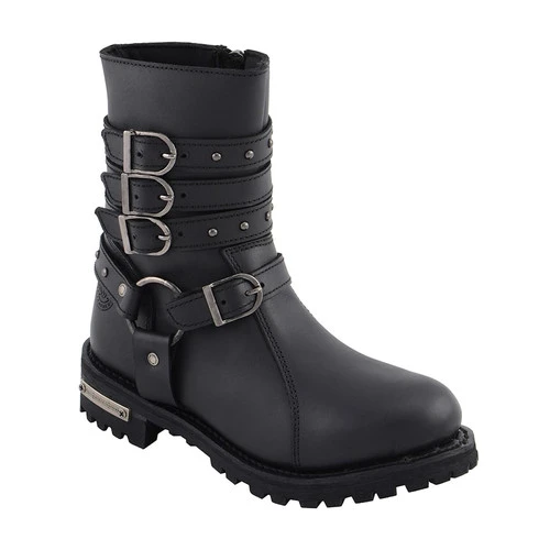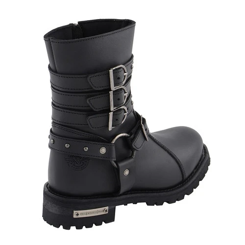 Women’s 9” Triple Buckle Leather Harness Boot W/ Side Zipper Entry