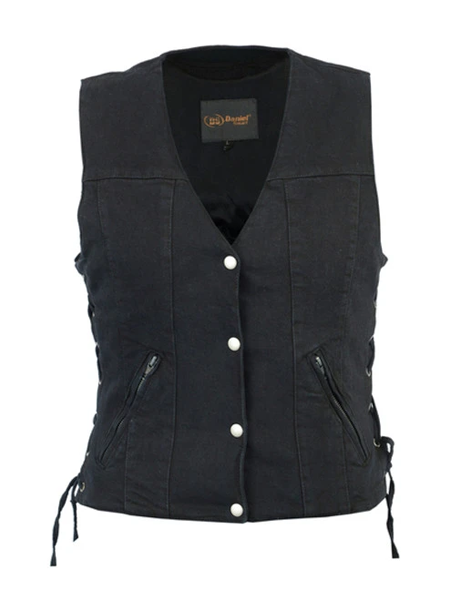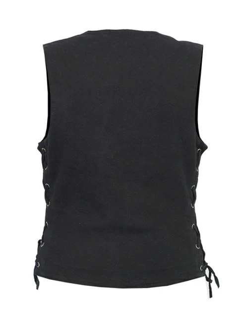 WOMEN’S SINGLE BACK PANEL CONCEALED CARRY DENIM VEST with Lace Sides